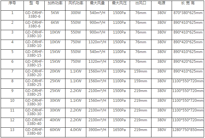 根据风洞效应合理设计,出风从螺旋电热丝内/外侧均匀通过,热交换率高,风量、风压损失少;发热丝为2080镍铬丝绕制,出风均匀通过,不产生废气及特殊气味,符合环保;人性化设计,设有多重过热过载保护装置,同时带有断电保护,多纤保温棉隔热,坚固机壳,使用安全可靠,可全年365日不停运转、安全工作;风机具有良好的散热装置,持续进风温度可达226℃,最高使用温度为350℃。